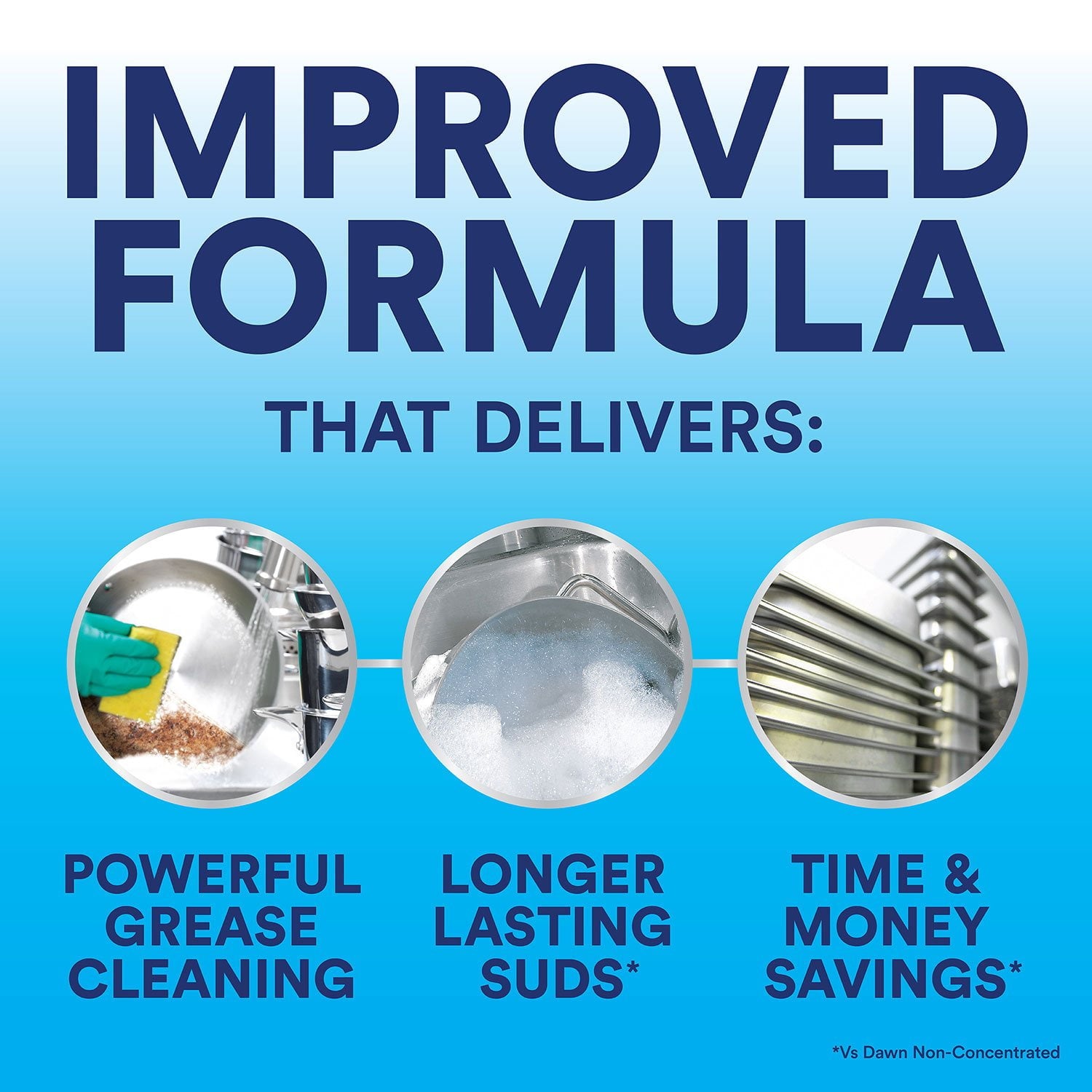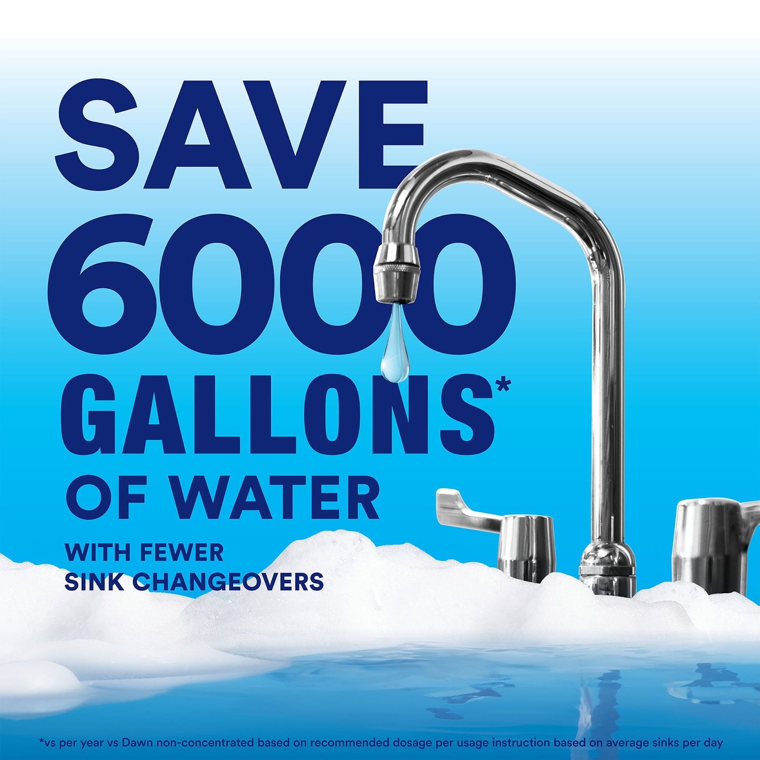 Dawn Professional Dish Detergent is the ideal solution for foodservice operations. It effectively cleans dirty pots, pans, and utensils, and reduces sink changeovers compared to other leading private brands, based on usage in a 10-gallon sink. An economical choice, this concentrated dish detergent can save up to 6,000 gallons of hot water per year when used as directed, compared to popular bargain brands.