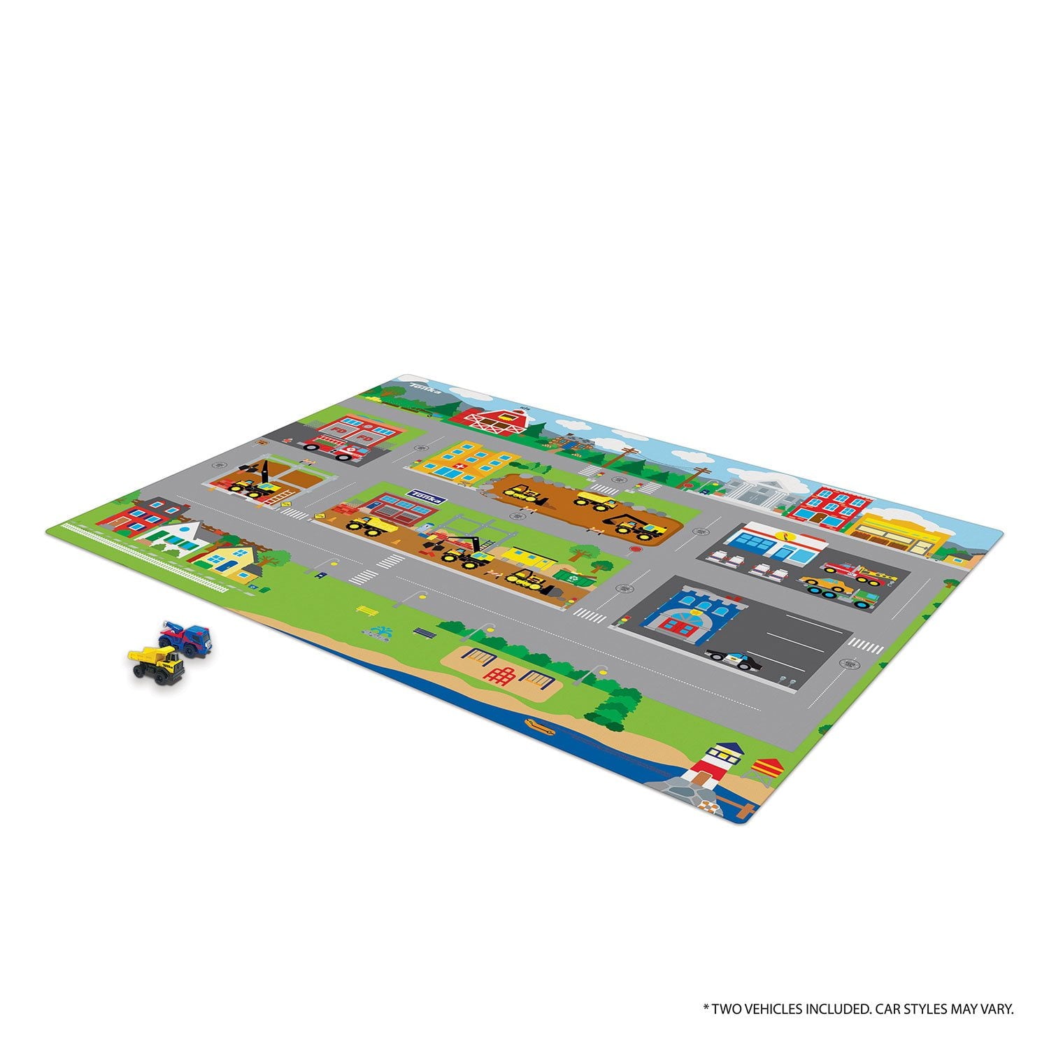 Step into a world of fun and excitement with the Megamat Jumbo Floor Playmat. This playmat features your child's favorite characters for an immersive playtime experience. Just roll out the 61 x 47-inch EVA foam playmat and let your little one take the two character vehicles on a thrilling ride. The playmat, which is lightweight, durable, and soft, is perfect for almost any setting.