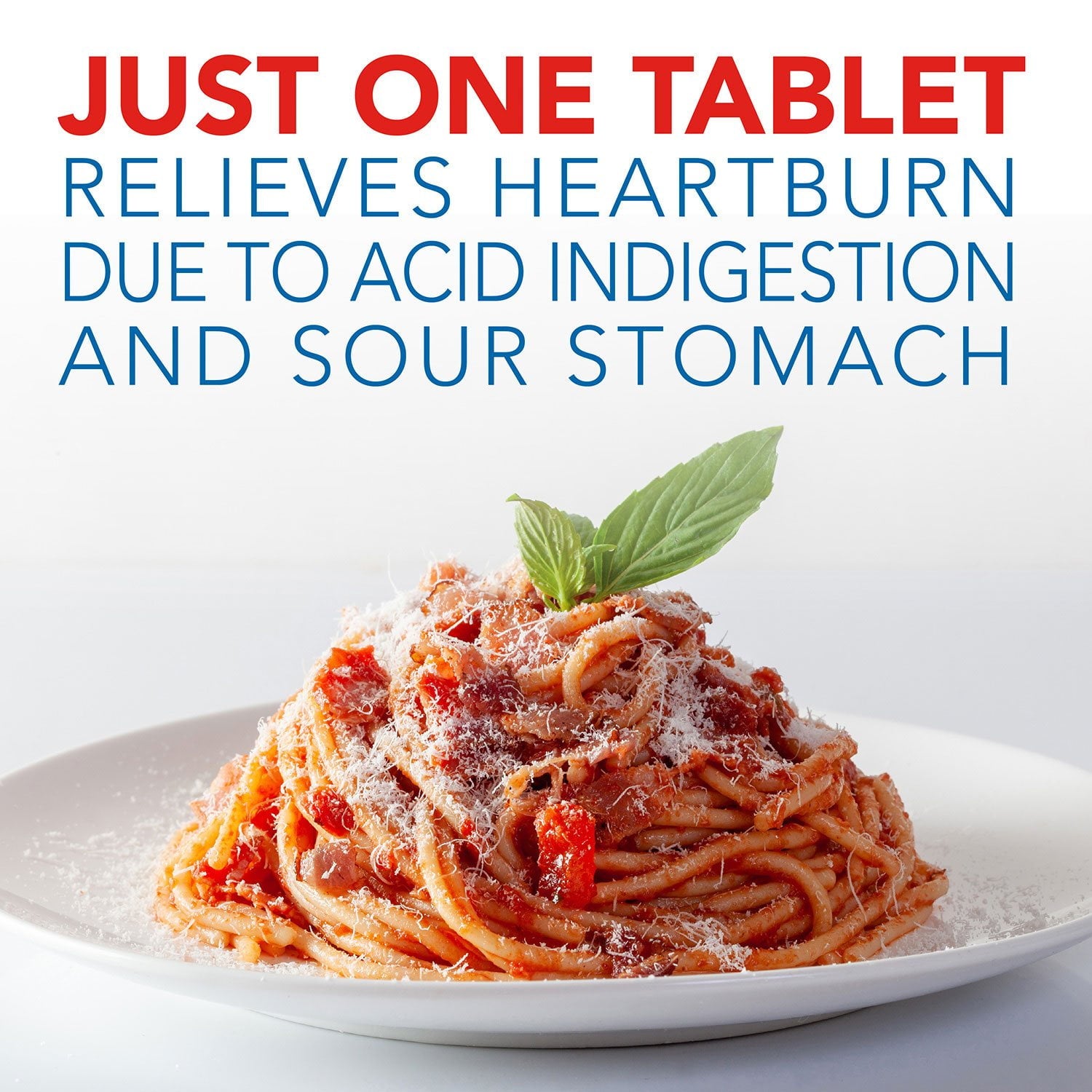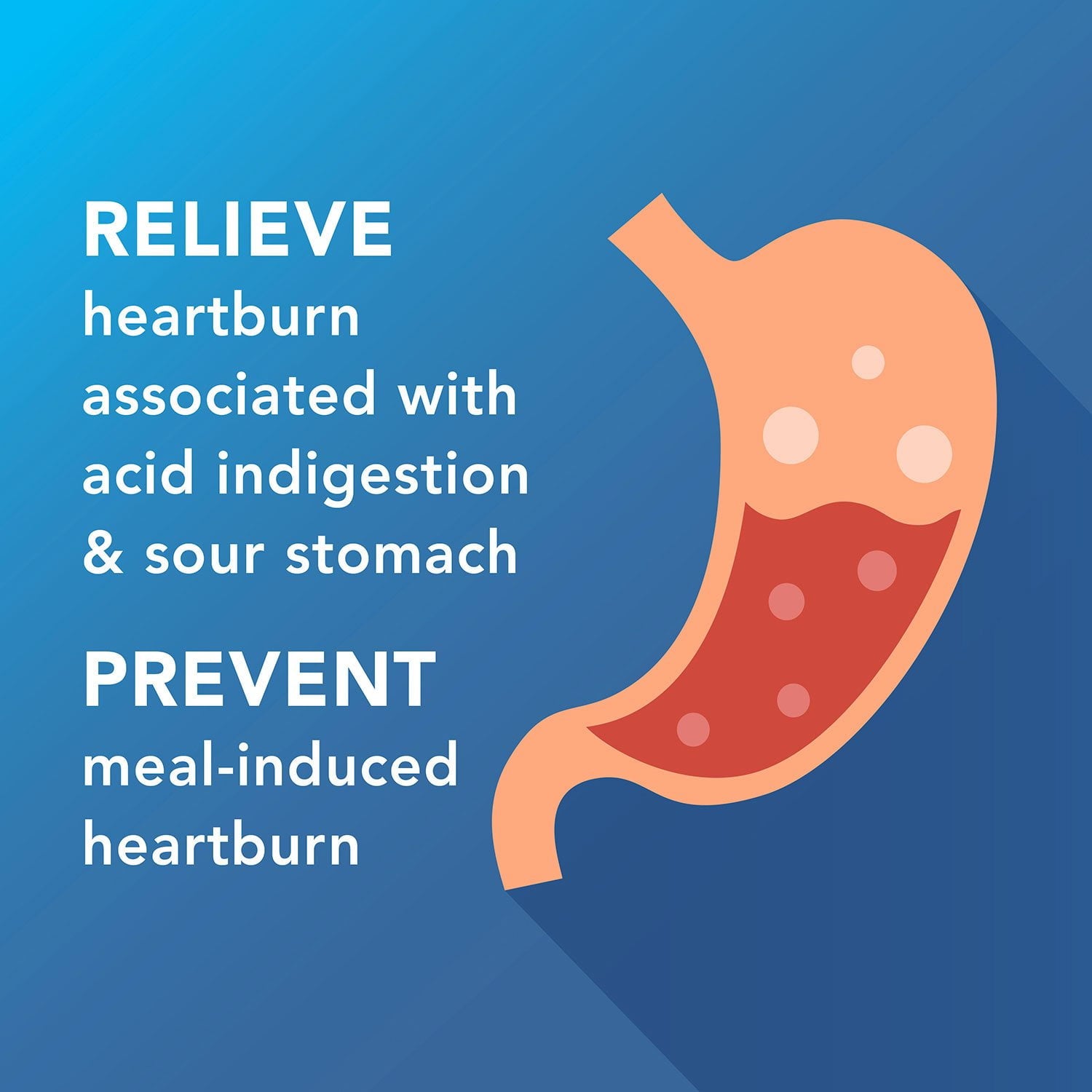 Directions: adults and children 12 years and over: to relieve symptoms, swallow 1 tablet with a glass of water. Do not chew; to prevent symptoms, swallow 1 tablet with a glass of water at any time from 10 to 60 minutes before eating food or drinking beverages that cause heartburn; do not use more than 2 tablets in 24 hours. Children under 12 years: ask a doctor.