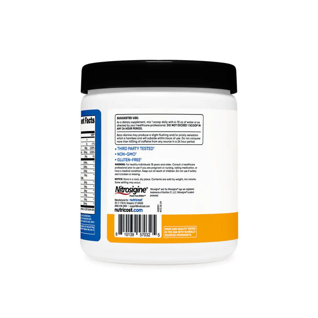 - Performance-Optimizing Ingredients: Formulated with a strategic blend of beta-alanine, taurine, l-citrulline, and n-acetyl l-tyrosine, Nutricost's Pre-Workout Complex is designed to support endurance, focus, and overall athletic performance. Maximize your potential with every scoop.