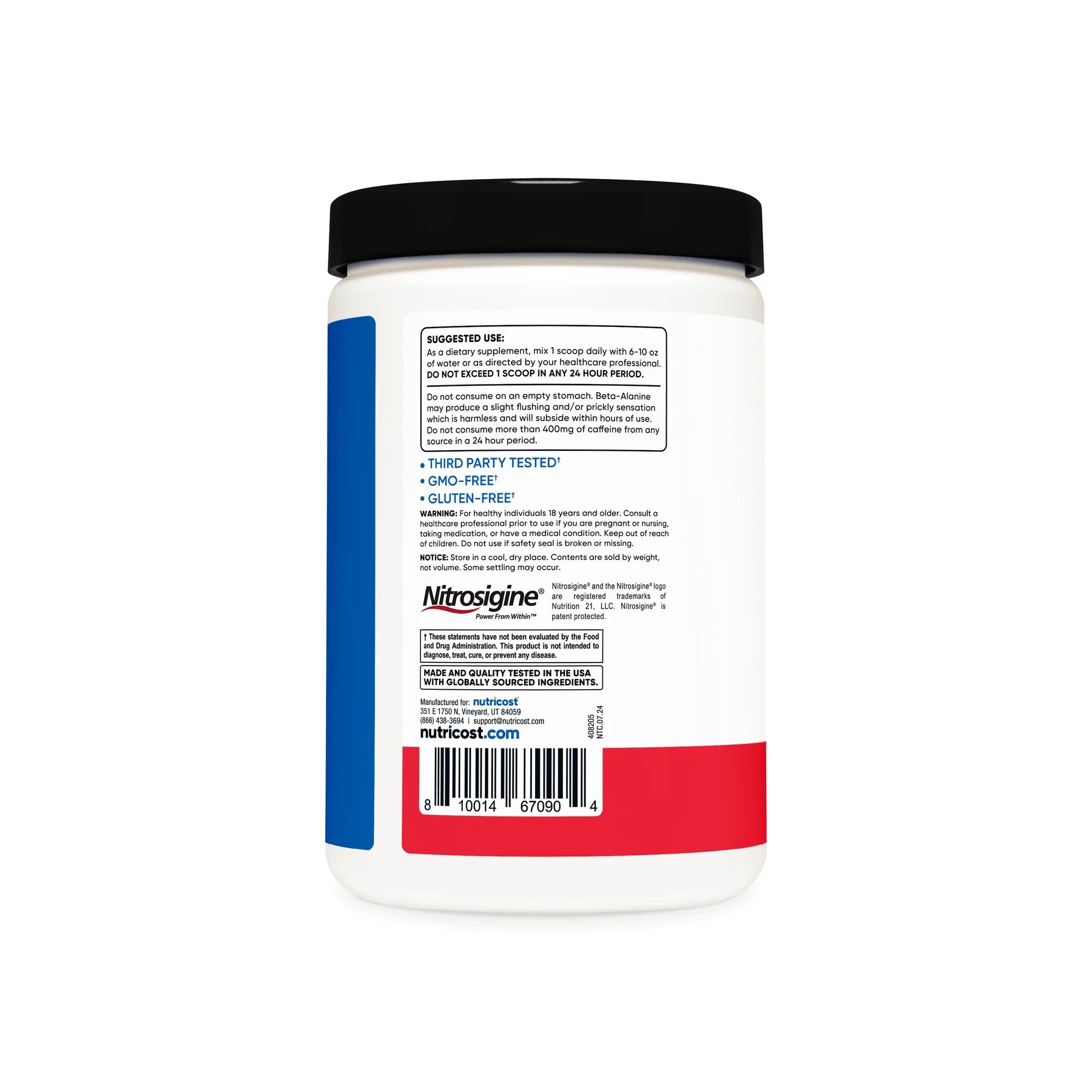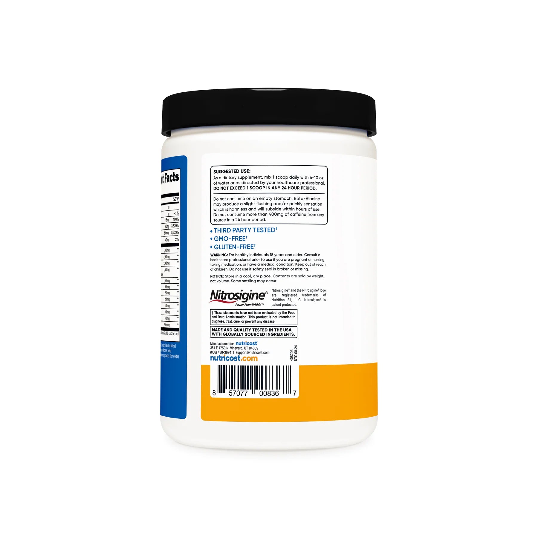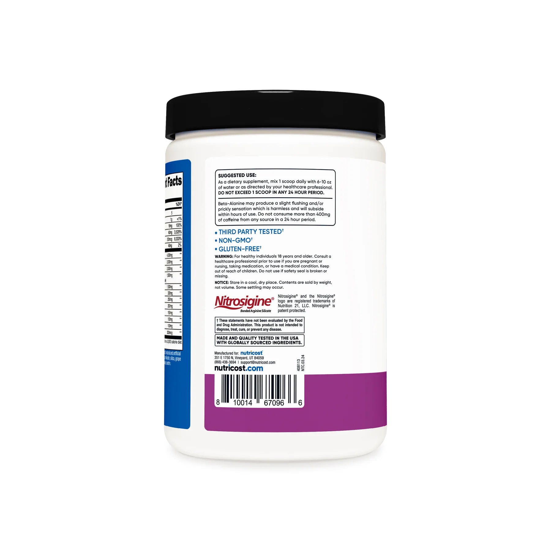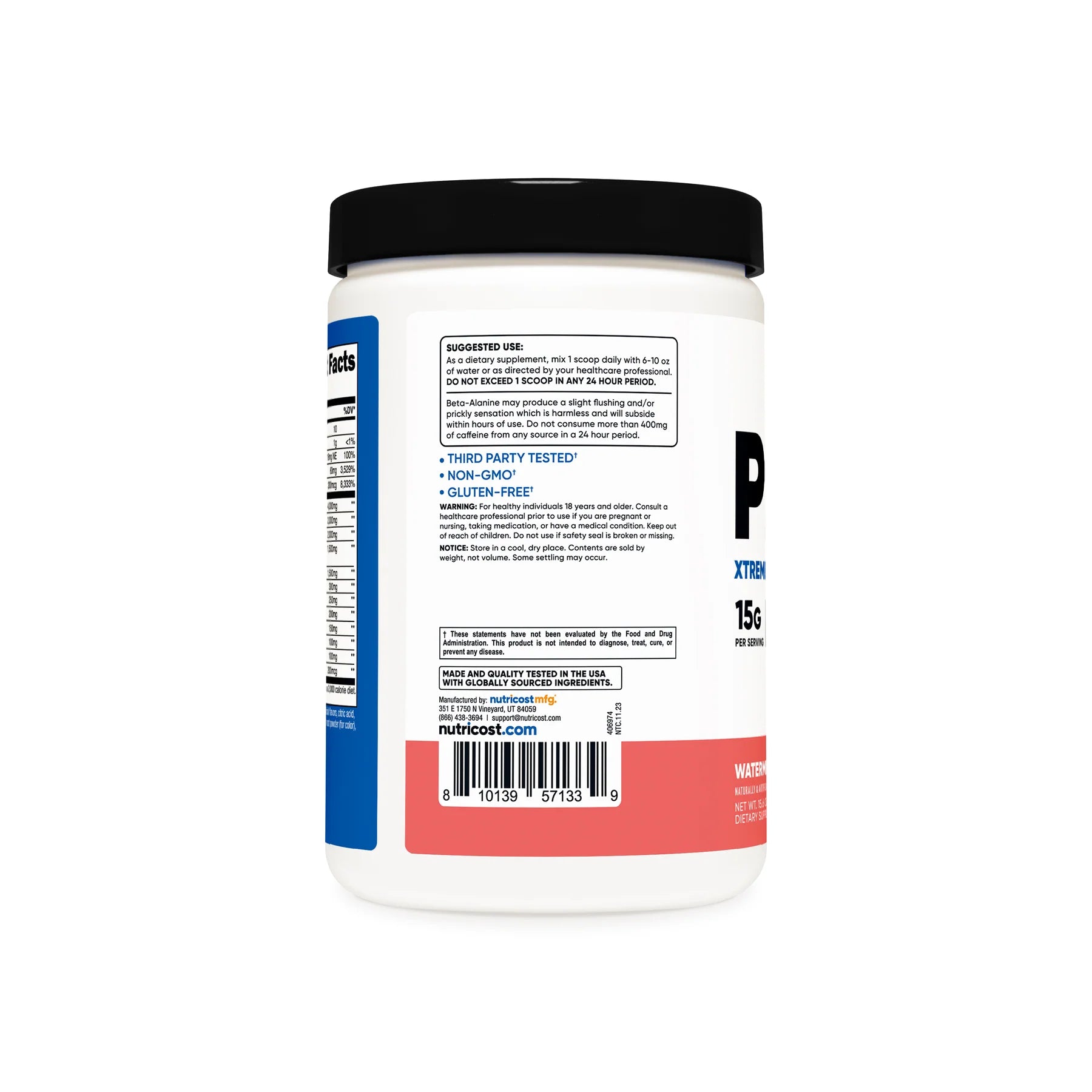 - Nutricost Pre-Workout Powder Contains L-Citrulline, Beta Alanine, Taurine, Nitrosigine, Caffeine Anhydrous, Theobromine, Huperzine A, Niacin, Vitamin B6, and Vitamin B12
