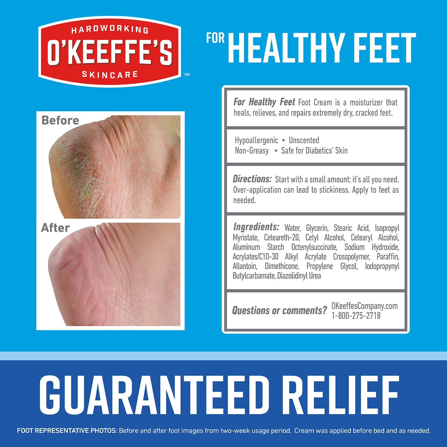 O’Keeffe’s® Working Hands® is a concentrated hand cream designed specifically to heal, relieve, and repair extremely dry, cracked hands. This product is safe for people with diabetes. When used daily, O’Keeffe’s® Working Hands® is clinically proven to boost moisture levels instantly, create a protective layer on the skin's surface, and help prevent further moisture loss. The cream is unscented, non-greasy, and hypoallergenic, making it suitable for all skin types.